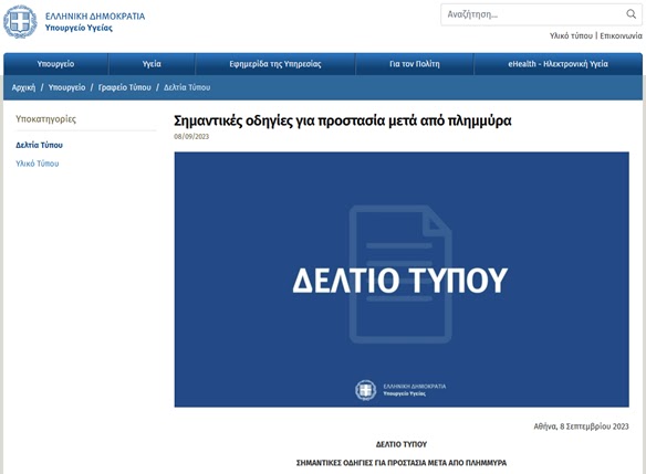 Το Υπουργείο Υγείας εξέδωσε Δελτίο Τύπου με Σημαντικές οδηγίες για προστασία μετά από πλημμύρα ⛶ Οδηγίες για την κυκλοφορία των ...